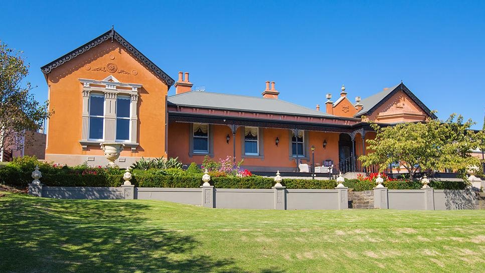 Moolooloo is an expansive residence which has wide bluestone steps leading to the main entrance portico with eleven principal rooms. Guests should be warned to take a deep breath as they step through the heavy timber and leadlight entrance door that signals one of Warrnambool’s grand old homesteads. Externally, the residence combines classical and Gothic features with an asymmetrically placed portico with decorative urns and Gothic barge boards creating a picturesque composition. The mid Victorian sandstone residence is rendered in a terracotta shade and has wide concave cast-iron return verandahs and lacework that extend on three sides. The homestead enjoys elevated views across the city from the verandahs, drawing room and ballroom. Heavily corbeled cornices and ornate ceiling plasterwork with columned archways provide typical, mid-Victorian interiors. Moolooloo has high 4.3m decorative ceilings that ensure all principal rooms enjoy grand proportions. A concealed trapdoor in the central hall opens to a subterranean wine cellar. Moolooloo is a rare and historic gem with gracious stately proportions set in elevated spacious grounds and admired as one of Warrnambool’s most elegant properties.