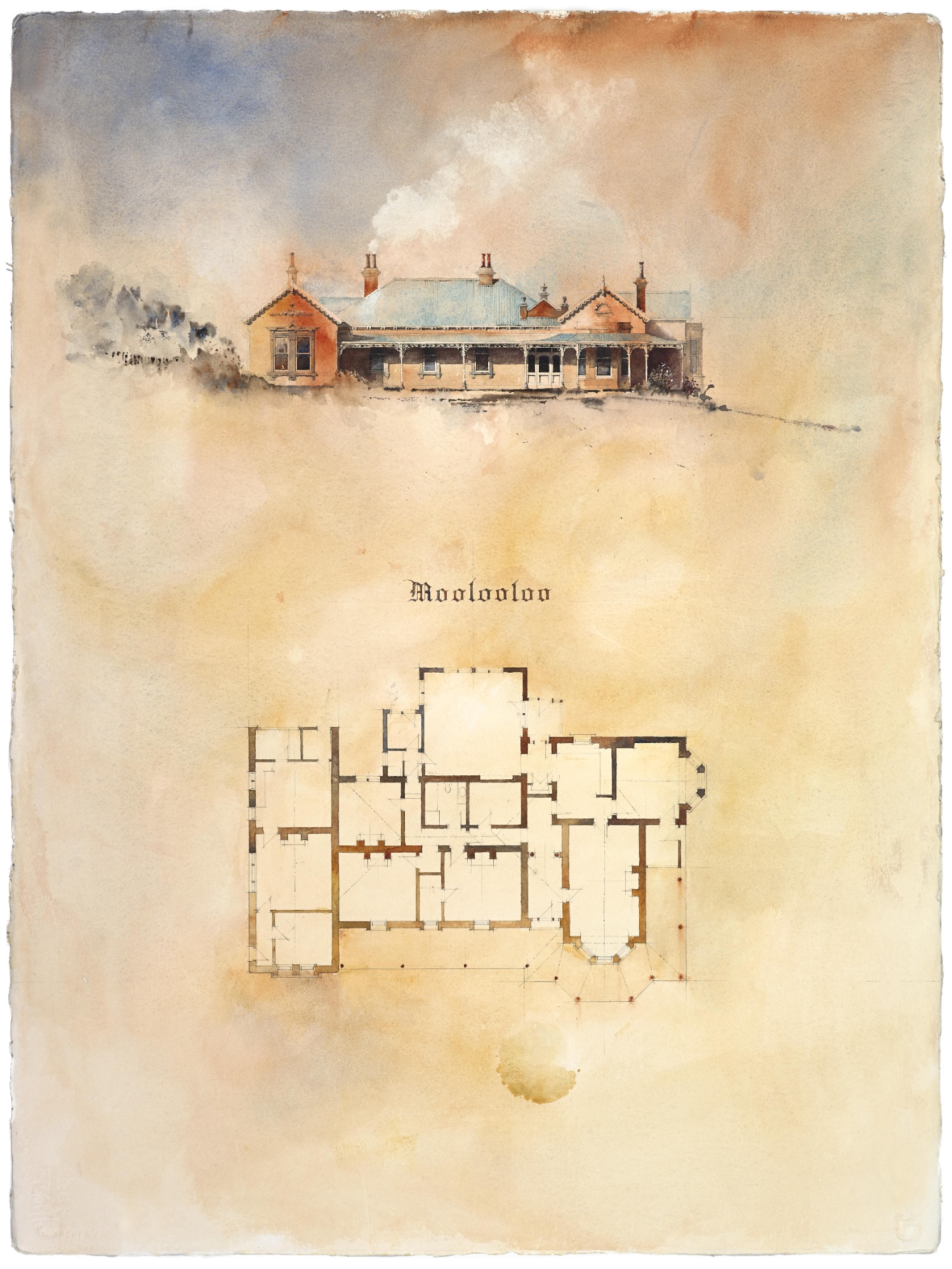 Moolooloo homestead, pronounced “Ma-lo-la” is Aboriginal for calm water and a notable and stately example of a building style that defines Warrnambool’s 19th century architecture. It is one of Warrnambool’s most gracious and finely crafted and detailed gentlemen’s residence built for J W Sheville, a local councillor and former Mayor who was a prominent Warrnambool citizen of the 1870s. The refined single storey residence was built in 1877 from locally quarried sandstone for J W Sheville, a Warrnambool wheelwright and investor. Moolooloo sits at a prestigious elevated address beside St John’s Presbyterian Church on Spence Street. In 1891 and 1895 prominent pastoralist J G Ware subdivided the extensive grounds to its present land holding today. The stucco-rendered residence was extended in 1882 and 1903 and displays an “axial conservative Classicism” design by architect George Jobbins. More recently, in 2004 the homestead was extended and a large sitting room added to the rear of the property adjoining Manifold Street.