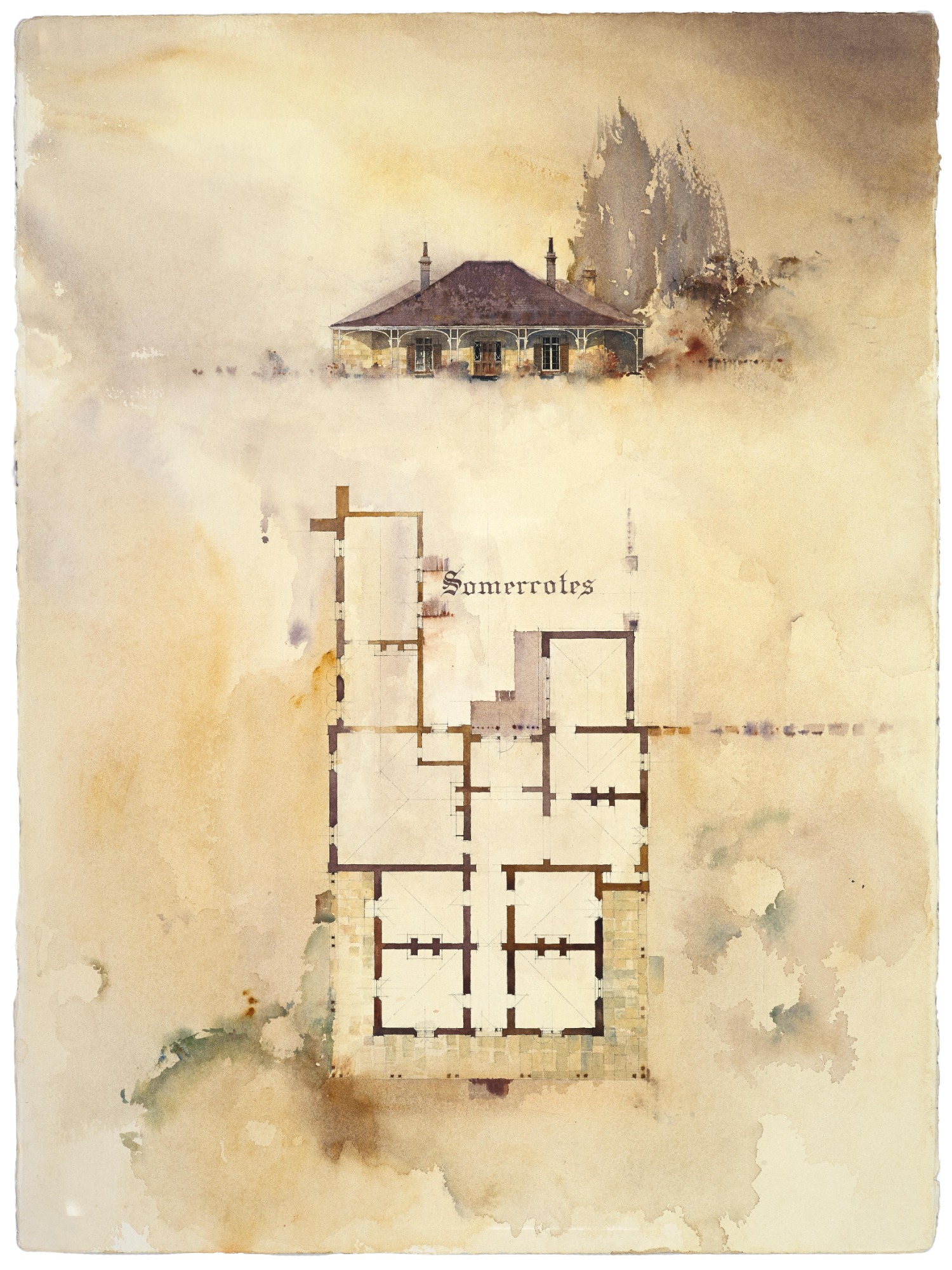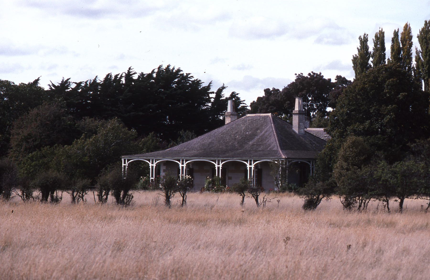 Built in 1842, Somercotes is a gracious and beautifully proportioned single storey Georgian sandstone homestead set in a backdrop of mature Lombardy Poplars. Hipped Welsh slate rooves crank at the verandah with tall stone chimneys that grace the roof line. The main homestead has deep low sweeping verandahs on three sides with paired timber columns five bays wide with curved timber bracketing. The homestead plan and orientation is simple with a wide central hall and formal rooms each side leading to a central kitchen. The external walls are coursed sandstone ashlar and picked sandstone quoining. The external French doors are inward opening with fine colonial margin-glazing and louvered shutters. The front has bracketed stone consuls to the windows with a flagged sandstone verandah and floor grills for basement and cellar ventilation.